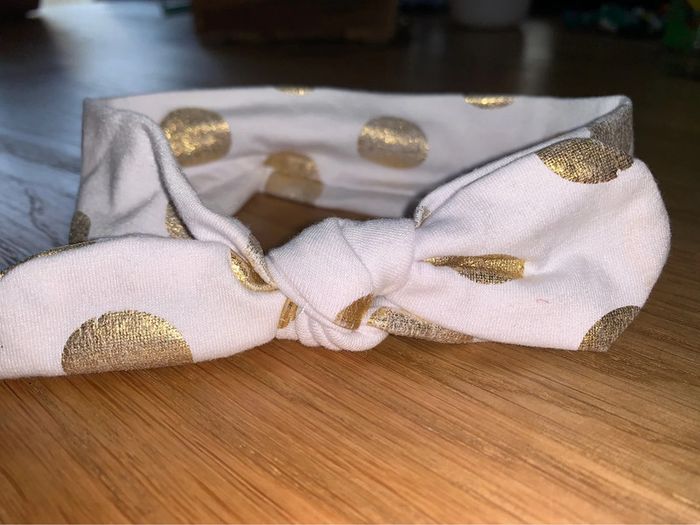 Bandeau tissu Tao tape à l’œil  Motif pois Blanc doré Noeud sur le dessus - photo numéro 6