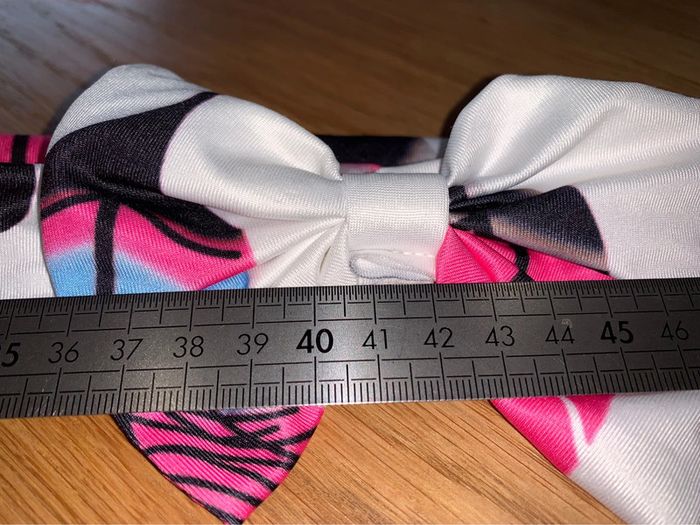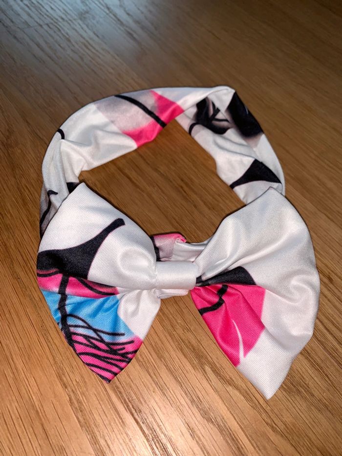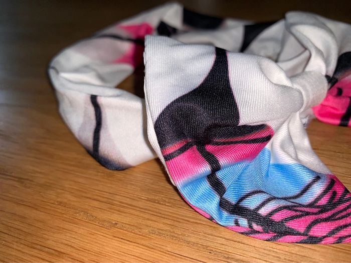 Bandeau tissu Tao tape à l’œil  Motif géométriques blanc noir rose-fuchsia bleu Noeud sur le dessus - photo numéro 4