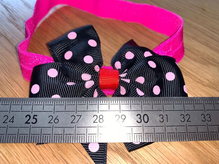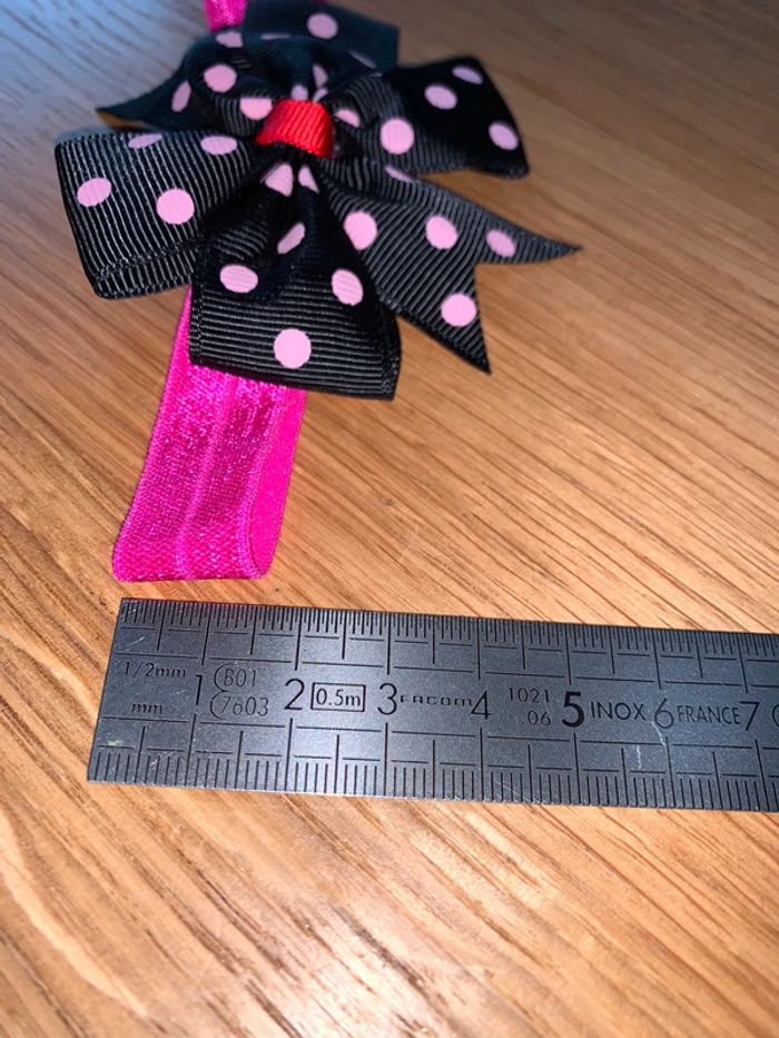 Bandeau élastique Tao tape à l’œil  Noir rose fuchsia rouge  Noeud motif pois - photo numéro 3