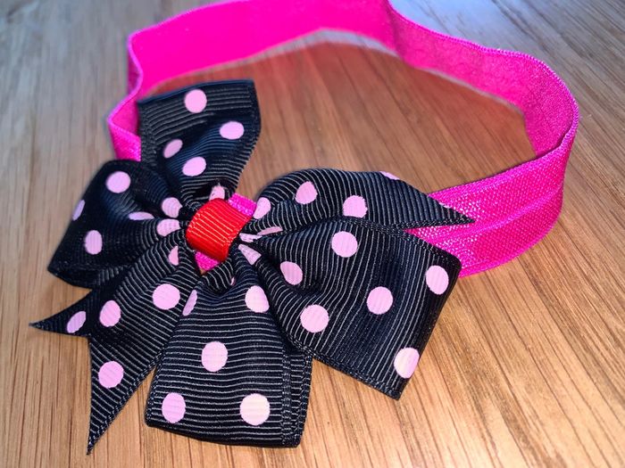 Bandeau élastique Tao tape à l’œil  Noir rose fuchsia rouge  Noeud motif pois - photo numéro 1
