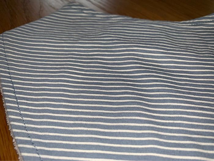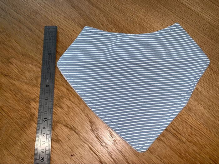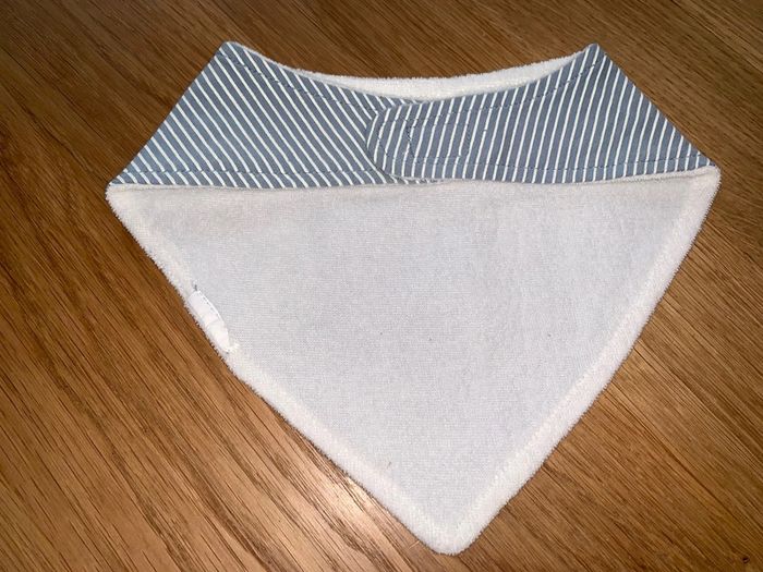 Bavoir triangle bébé tao tape à l’œil Bleu blanc Visuel rayures Jersey devant Éponge au dos Fermeture velcro Cf photos pour dimensions