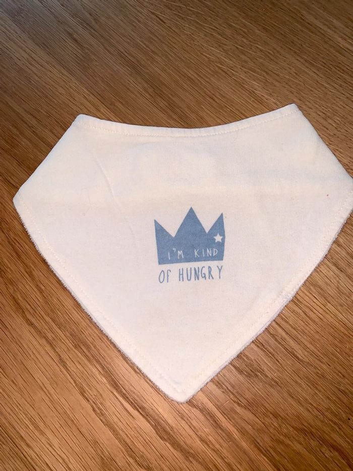 Bavoir triangle bébé tao tape à l’œil  Bleu blanc  Visuel couronne + I’m kind of hungry - photo numéro 4