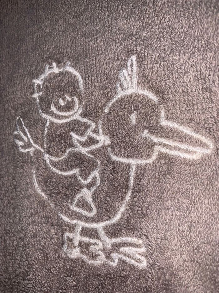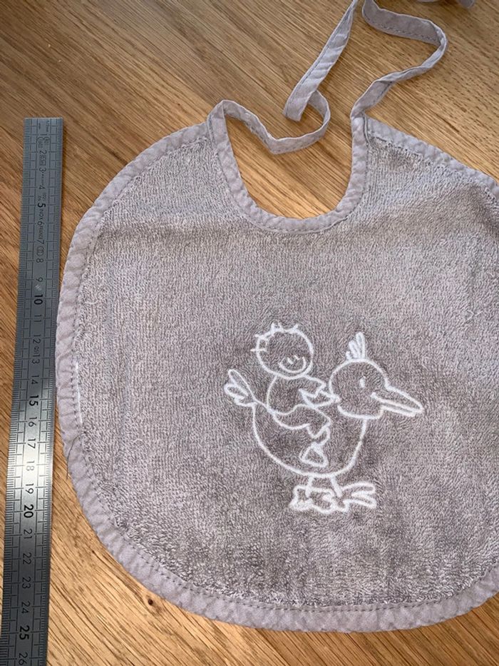 Bavoir bébé DPAM du pareil au même Gris marron Visuel blanc broderie canard avec enfant sur le dos Éponge Fermeture liens noeud Cf photos pour dimensions