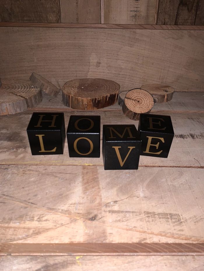Cubes lettres messages (love + homme) en bois Maison du monde En bois Noir doré A poser Cf photos pour dimensions