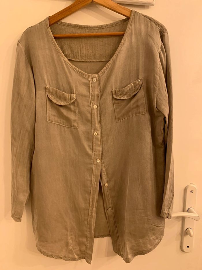 Chemise femme boutique indépendante avec sequins Tisssu kaki / marron grisé effet délavé - photo numéro 2