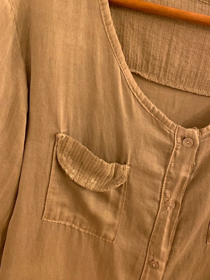 Chemise femme boutique indépendante avec sequins Tisssu kaki / marron grisé effet délavé - photo numéro 4