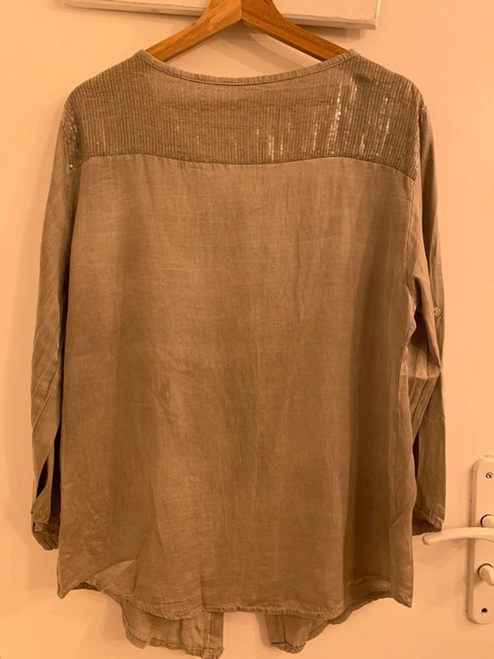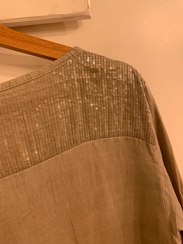 Chemise femme boutique indépendante avec sequins Tisssu kaki / marron grisé effet délavé - photo numéro 6