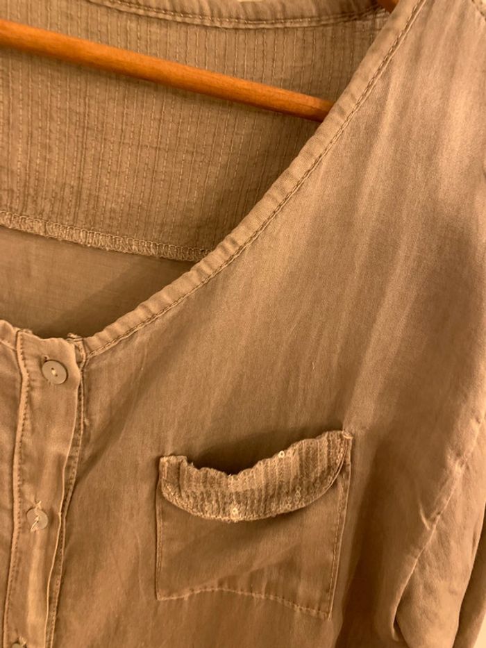 Chemise femme boutique indépendante avec sequins Tisssu kaki / marron grisé effet délavé - photo numéro 3