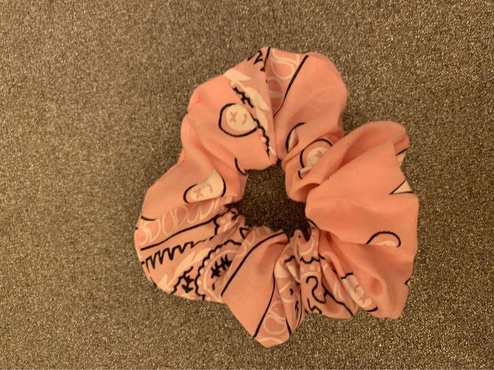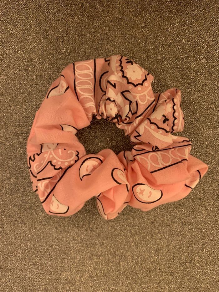 Chouchou Adopt’ Tissu rose motif bandana noir et blanc  Accessoire coiffure cheveux - photo numéro 1