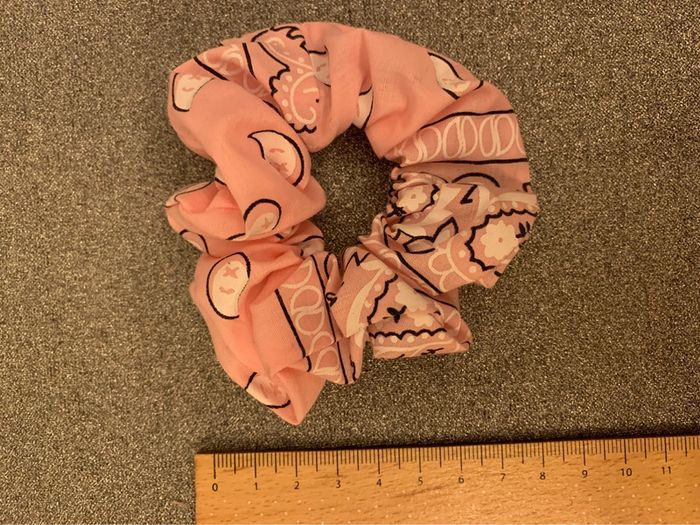 Chouchou Adopt’ Tissu rose motif bandana noir et blanc  Accessoire coiffure cheveux - photo numéro 3