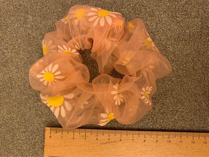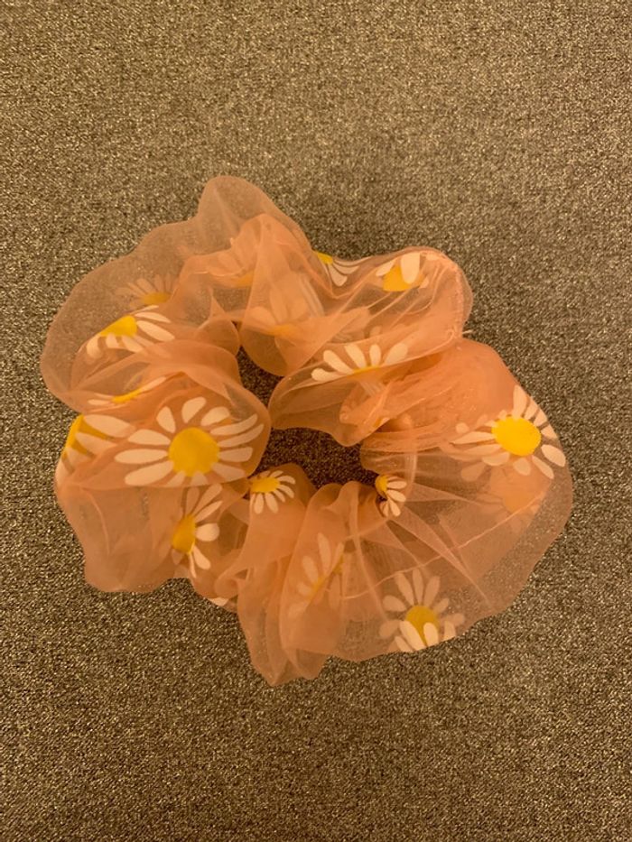 Chouchou Adopt’ Tissu tulle transparent rose avec fleurs marguerites jaunes et blanches - photo numéro 1