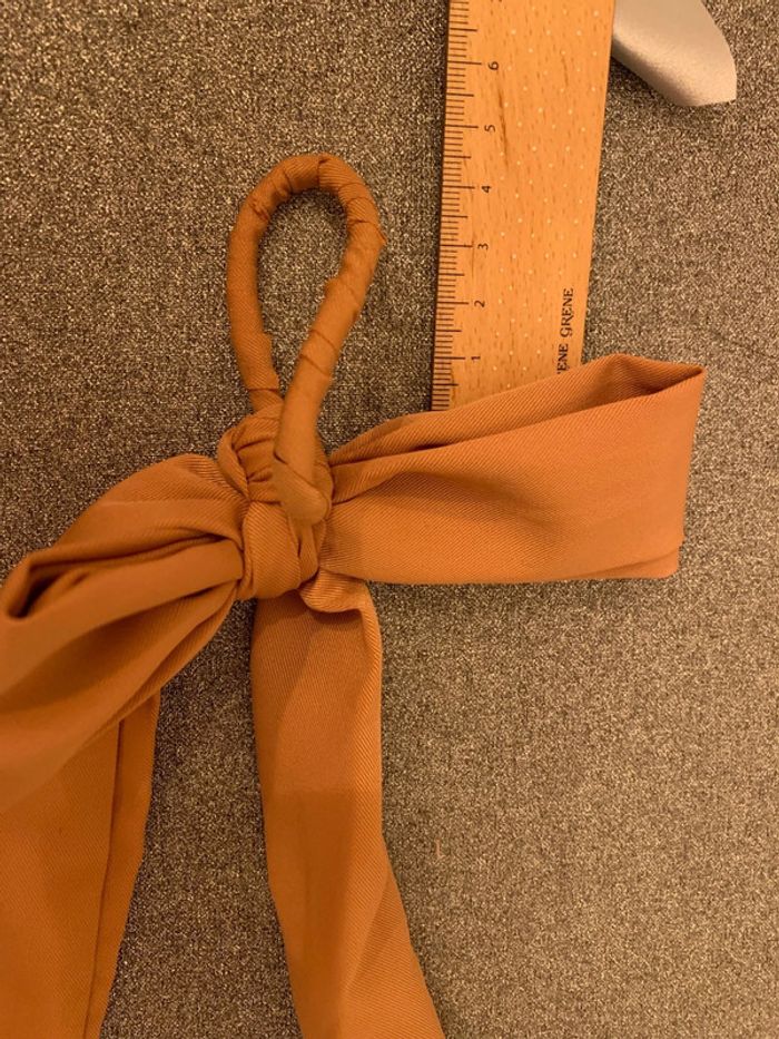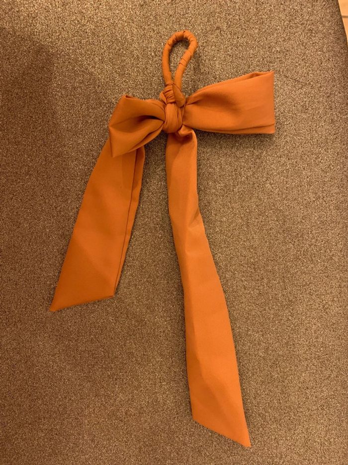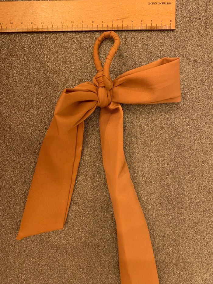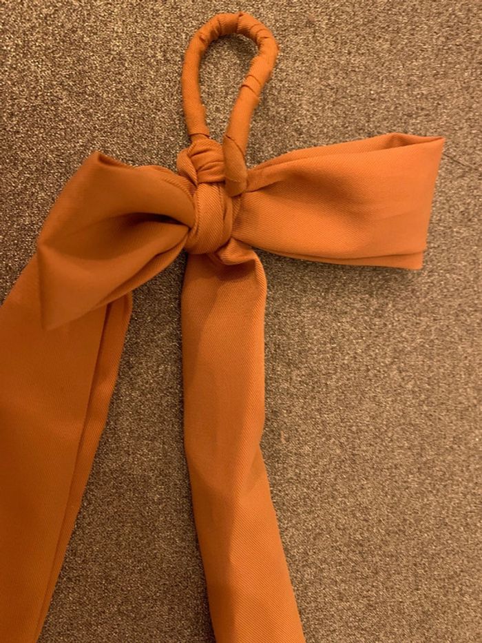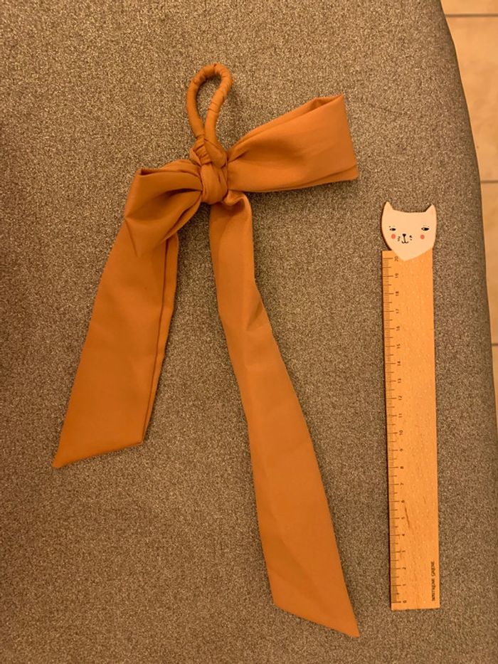 Chouchou à pans noué - noeud Adopt’ Tissu marron camel-tabac Accessoire coiffure cheveux - photo numéro 4