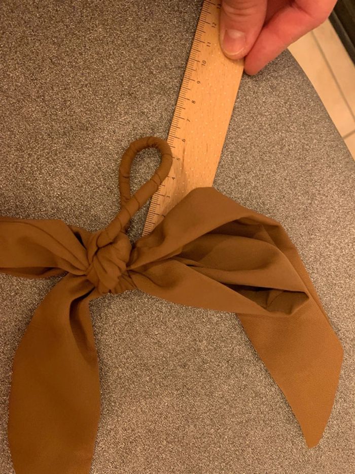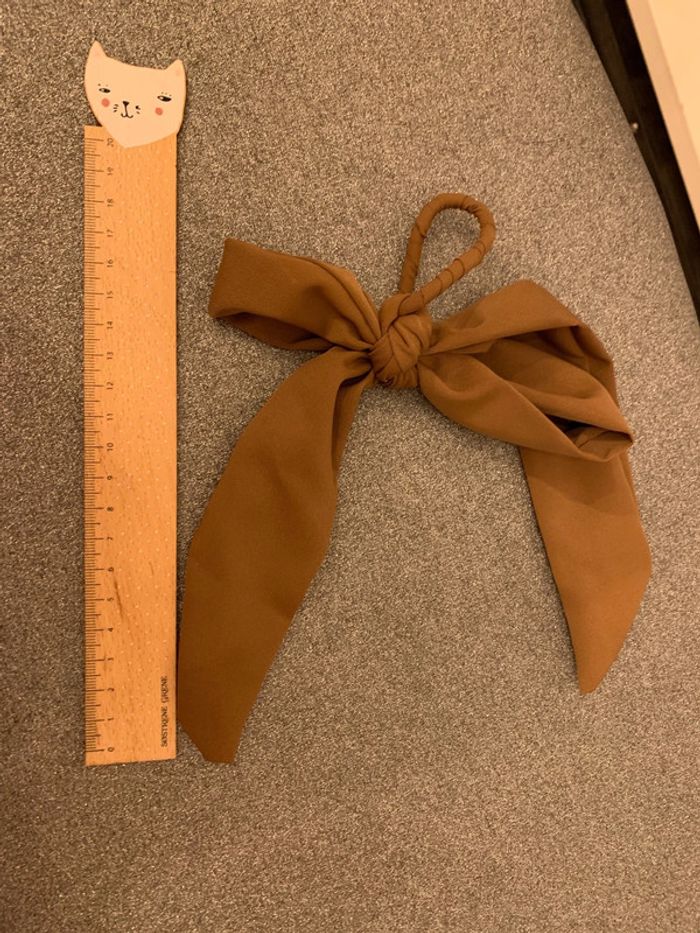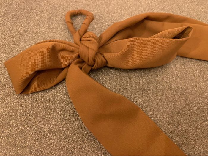 Chouchou à pans noué - noeud Adopt’ Tissu marron camel-tabac Accessoire coiffure cheveux - photo numéro 4