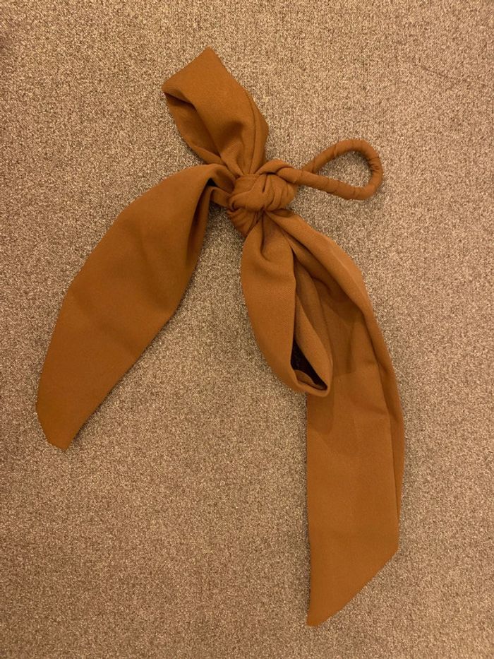 Chouchou à pans noué - noeud Adopt’ Tissu marron camel-tabac Accessoire coiffure cheveux - photo numéro 1