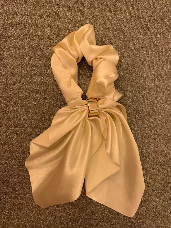 Chouchou à pans Adopt’ Tissu beige crème brillant effet soyeux  Bijou boucle - photo numéro 1