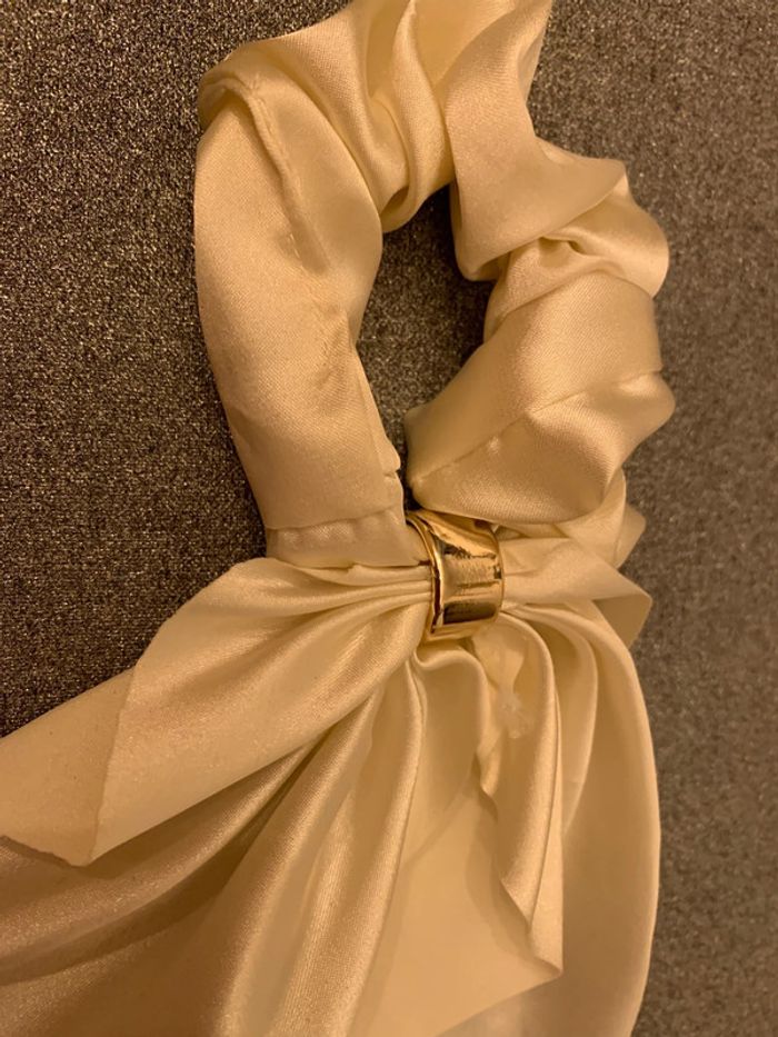 Chouchou à pans Adopt’ Tissu beige crème brillant effet soyeux  Bijou boucle