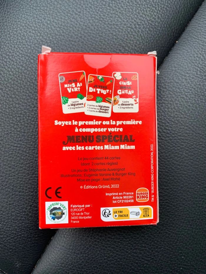Lot de deux jouet jeu de cartes Le menu miam Menu spécial collection Burger King Menu King junior jouet cadeau à collectionner Lot dissociable : 1€ l’un ou 2€ les deux