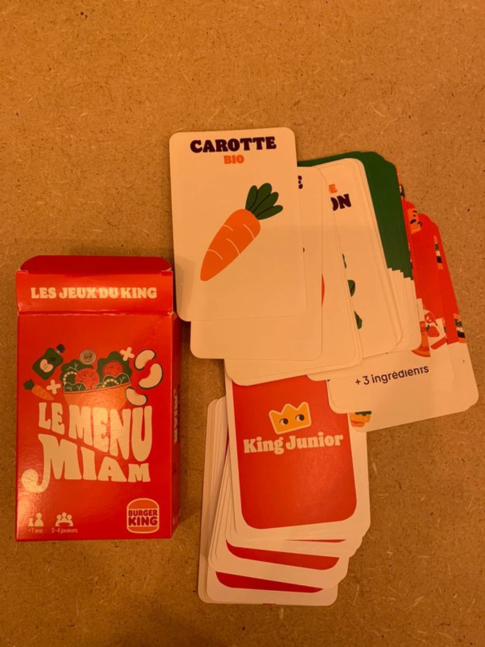 jouet jeu de cartes Le menu miam Menu spécial collection Burger King Menu King junior jouet cadeau à collectionner