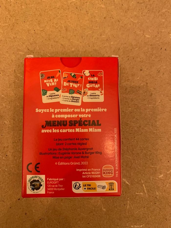 jouet jeu de cartes  Le menu miam Menu spécial  collection Burger King Menu King junior - photo numéro 1