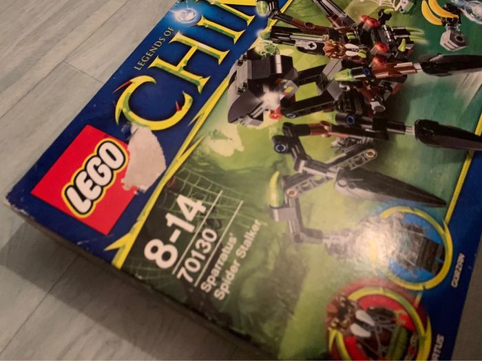 Boite VIDE Lego Chima 70130 Sparratus Spider Stalker Merci de bien regarder les photos pour voire l’état des boites svp Raison de la vente de boîte vide: - les boites vides sont vendues dans le but de satisfaire les collectionneurs recherchant des boites à collectionner ou bien - pour toute personne souhaitent ranger ses Lego, mais ayant perdu la boîte d’origine correspondante. Alors, plutôt que de jeter des boites inutilement, je pense aux personnages qui en recherchent (des boites Disney sont également vendues, alors pourquoi pas des boites Lego?).