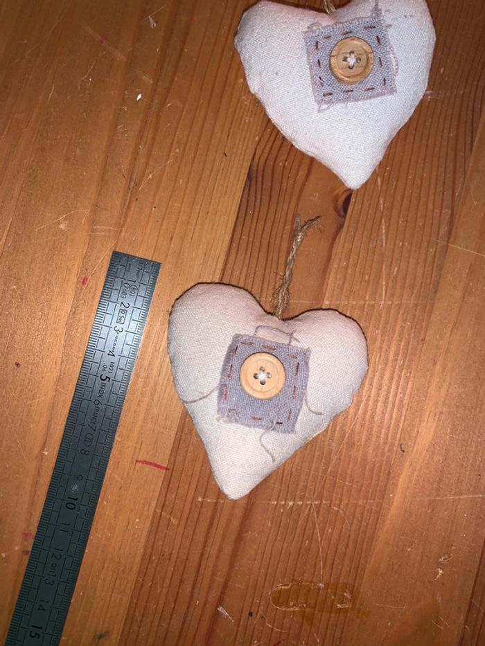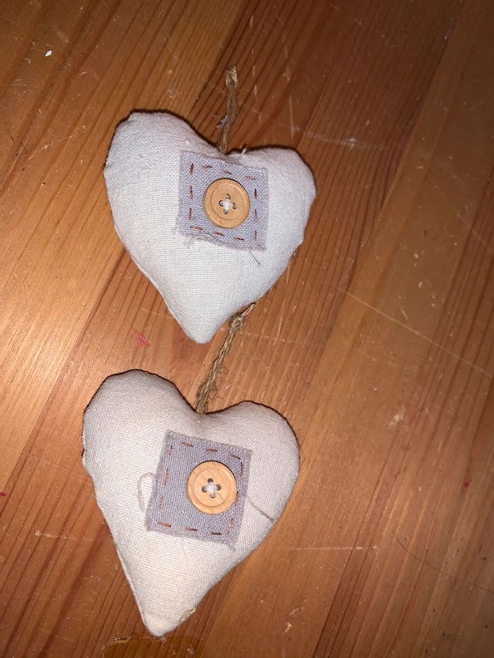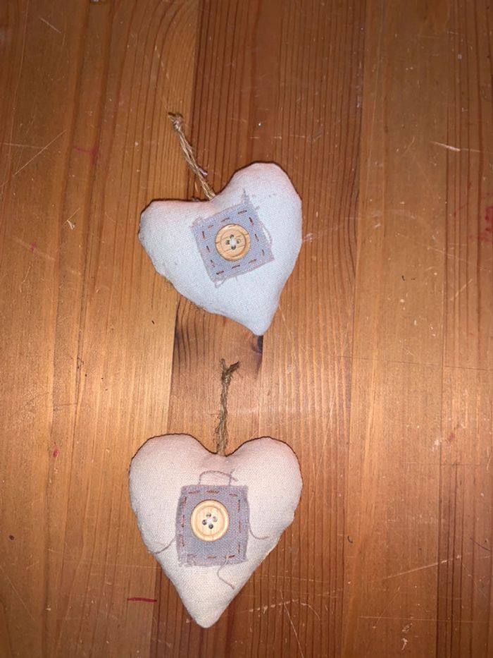 Lot deux Portes clé coeur Maison du Monde Tissu beige crème uni Pièce grise + bouton bois Finition croquet vert Rose fuchsia blanc vert Attache corde A utiliser en porte clé ou en décoration de porte/ fenêtre