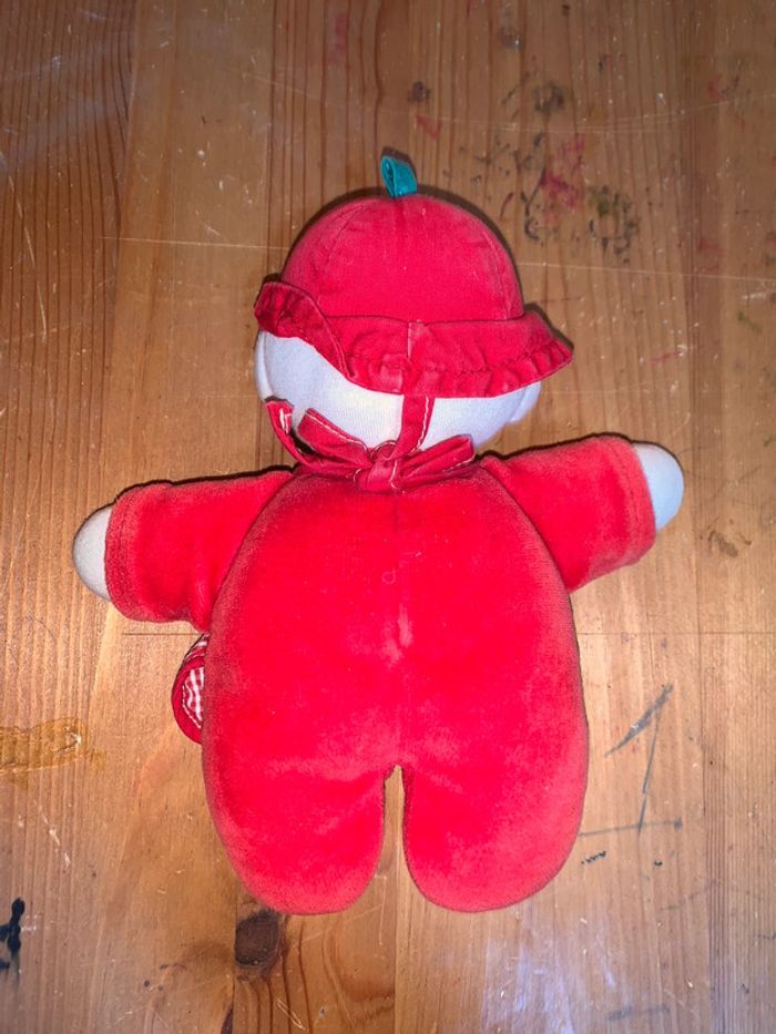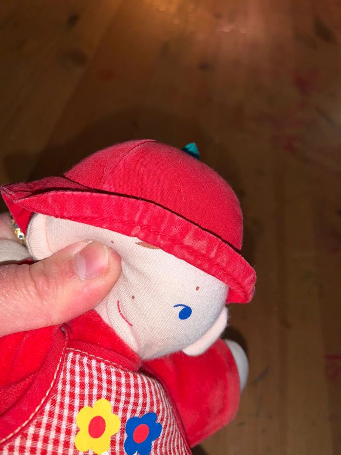 Doudou poupée Corolle jardinier Tissu tout doux  Uni rouge + carreaux blancs - photo numéro 4