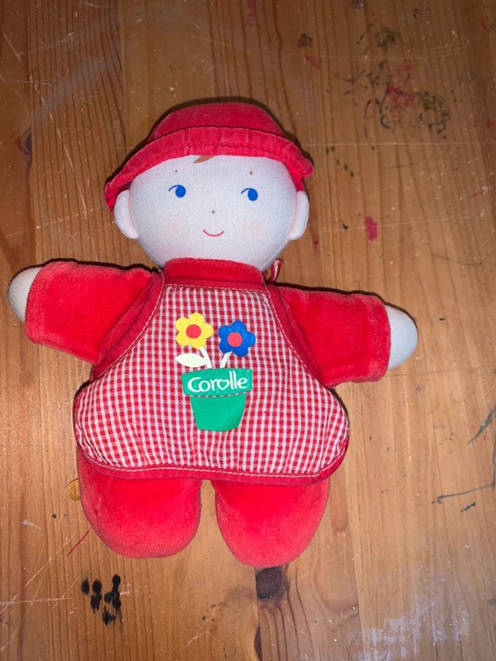 Doudou poupée Corolle jardinier Tissu tout doux  Uni rouge + carreaux blancs - photo numéro 1