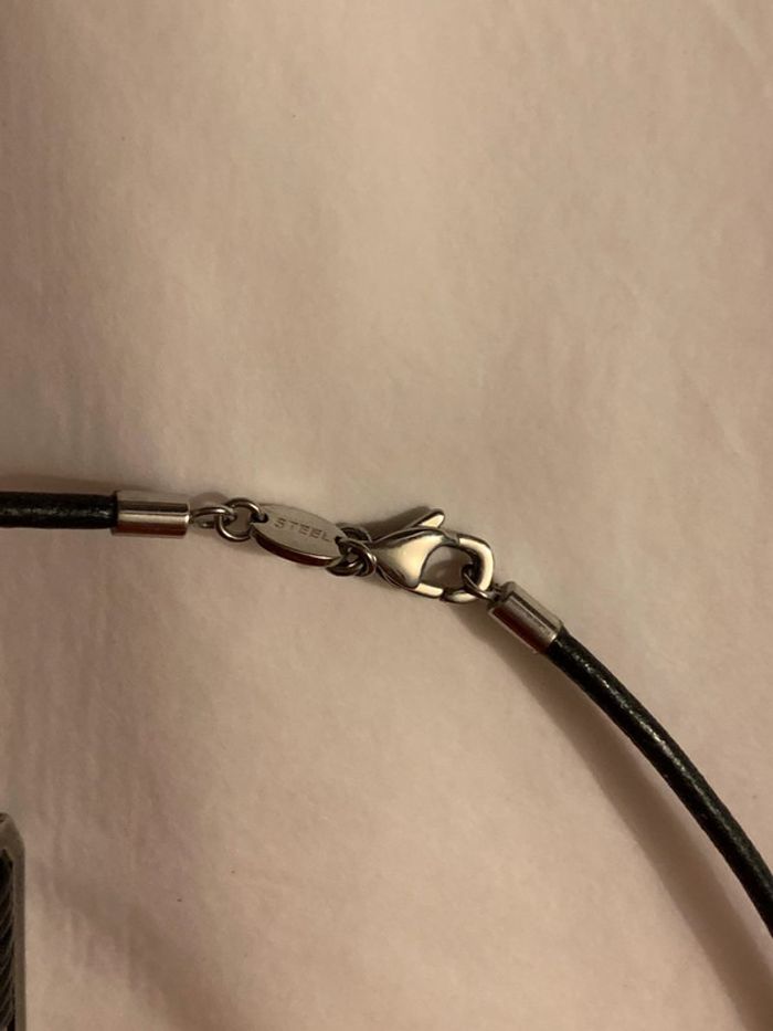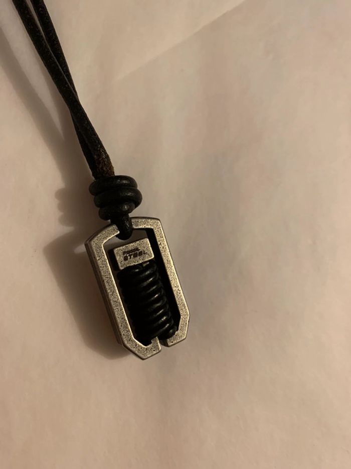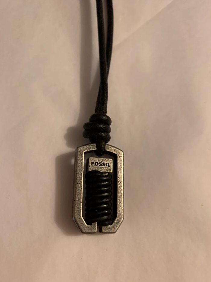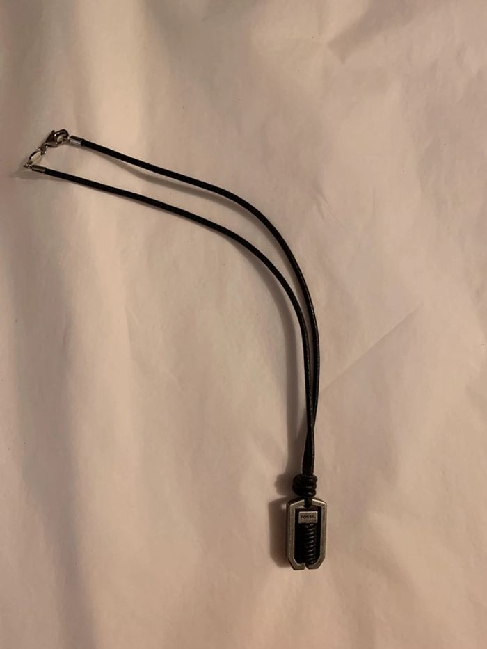Collier homme Fossil Corde noire  Pendentif: breloque gris argenté (corde intérieur): brossé - photo numéro 3