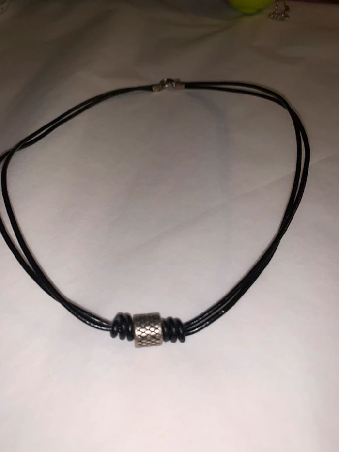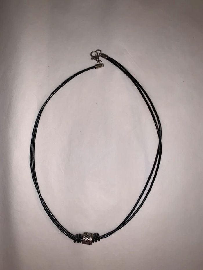Collier homme Histoire d’Or Double Corde noire  Perle breloque gris argenté (motif type écailles) - photo numéro 2