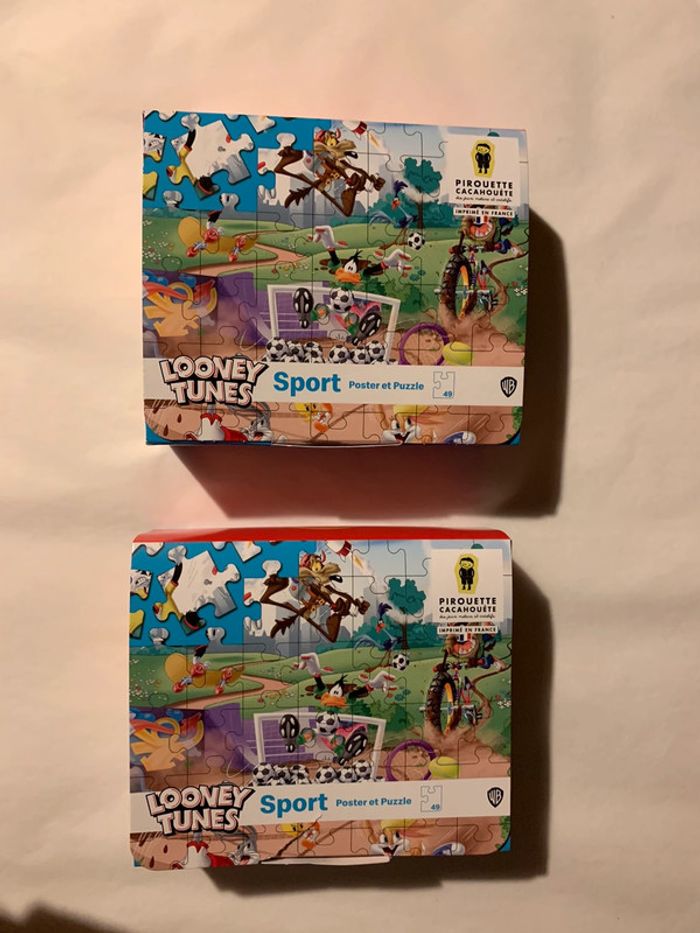 lot de deux jeu jouet poster + puzzle dans boîte carton (légèrement déchirée idem photo) Looney Tunes sport WB Pirouette Cacahouète collection Mc Donald’s happy meal jouet cadeau à collectionner lot dissociable: 1€ l’un ou 2€ les deux