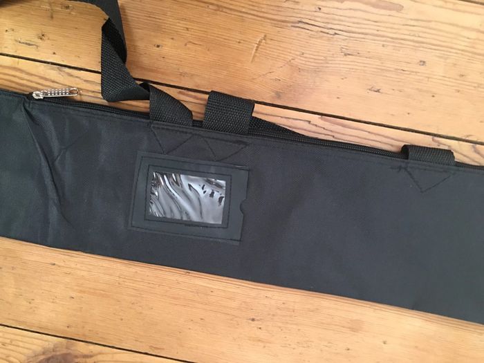 housse de transport / sac de protection en toile boutique indépendante tissu noir fermeture à glissière emplacement pour étiquette, avec protection transparente hanses de transport 13 x 150 cm idéal pour y ranger et transporter accessoires, oriflamme, drapeau, structure…