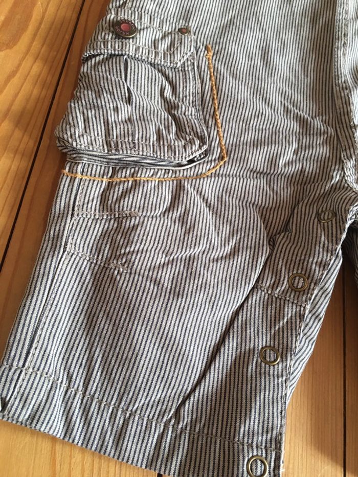 Salopette jambes longues + bavette bretelles enfant garçon sergent major marron beige à rayures - photo numéro 10
