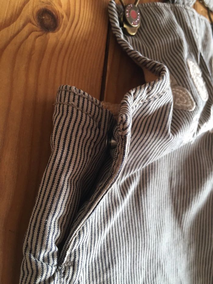 Salopette jambes longues + bavette bretelles enfant garçon sergent major marron beige à rayures - photo numéro 9