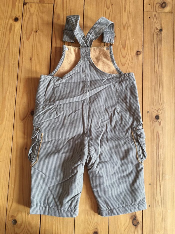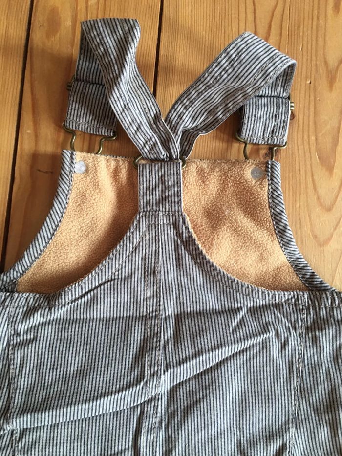 Salopette jambes longues + bavette bretelles enfant garçon sergent major marron beige à rayures - photo numéro 3