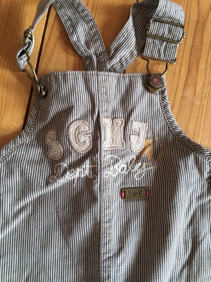 Salopette jambes longues + bavette bretelles enfant garçon sergent major marron beige à rayures - photo numéro 2