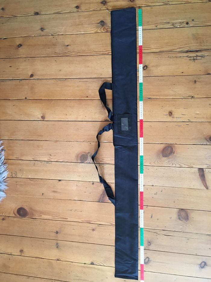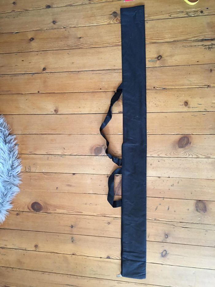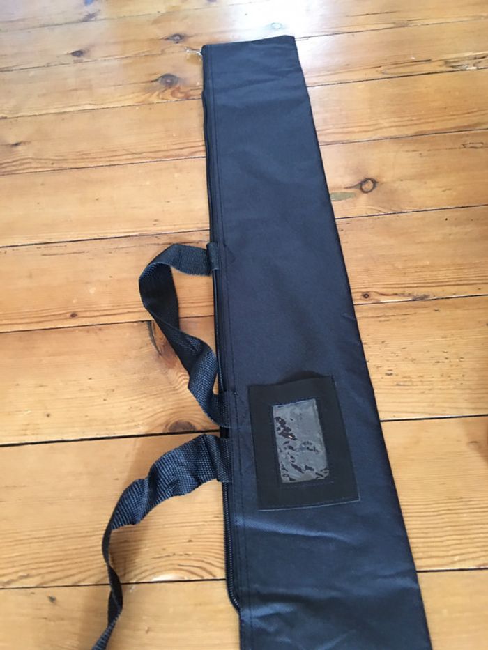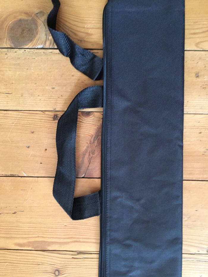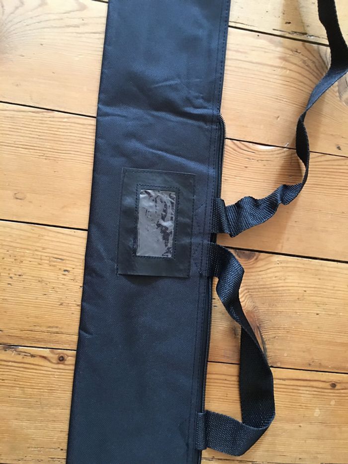 housse / sac de protection boutique indépendante tissu noir fermeture à glissière emplacement pour étiquette hanses de transport 14 x 150 cm idéal pour y ranger et transporter accessoires, oriflamme, drapeau…