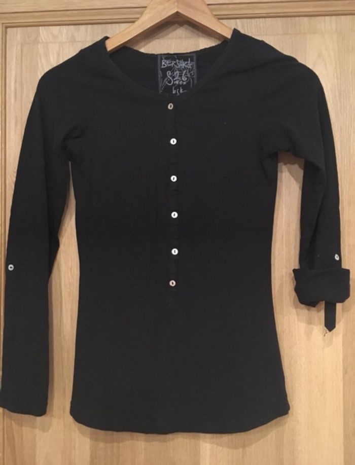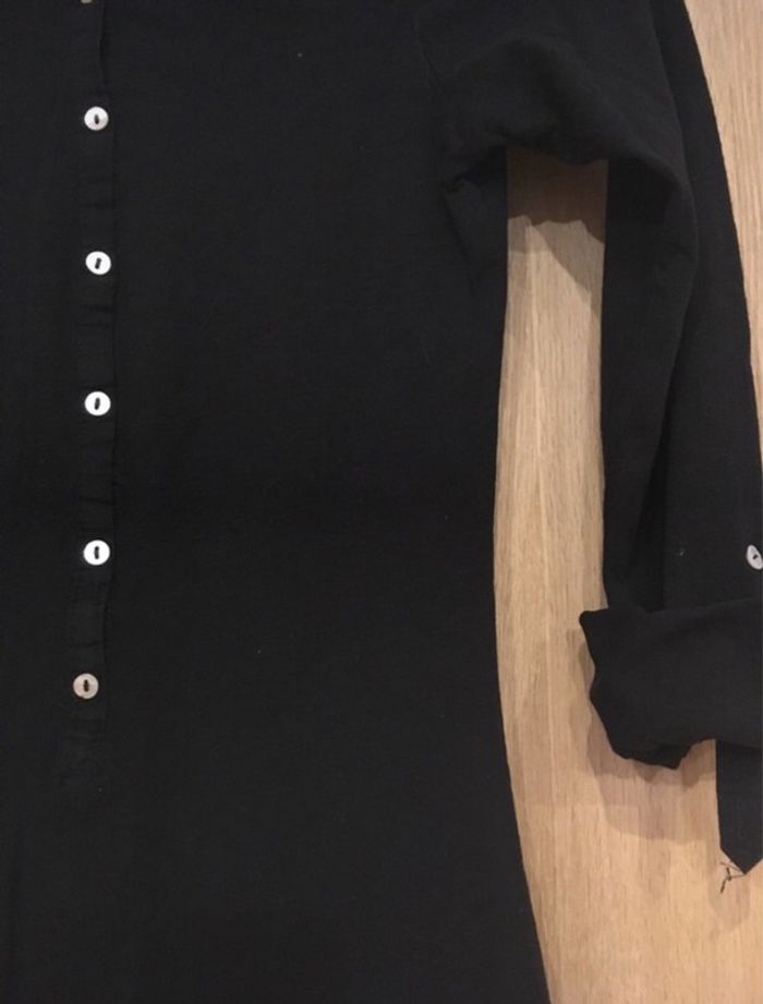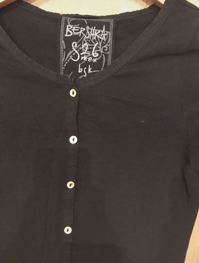 tee-shirt t-shirt femme Bershka encolure arrondie fente milieu devant avec boutons manches longues avec pattes de boutonnages pour retrousser coupe droite tissu souple bas légèrement courbe coloris noir