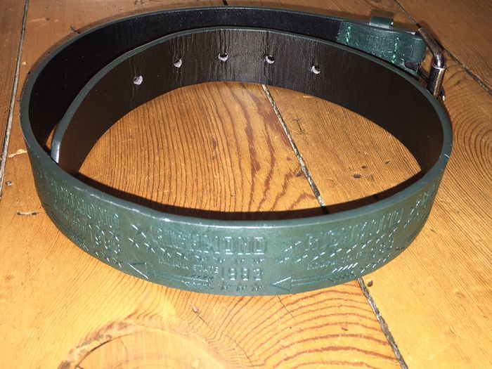 ceinture enfant garçon tape à l’œil - TAO simili cuir vert visuel texte all over portée deux fois comme neuve boucle d’attache réglable