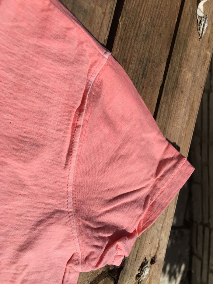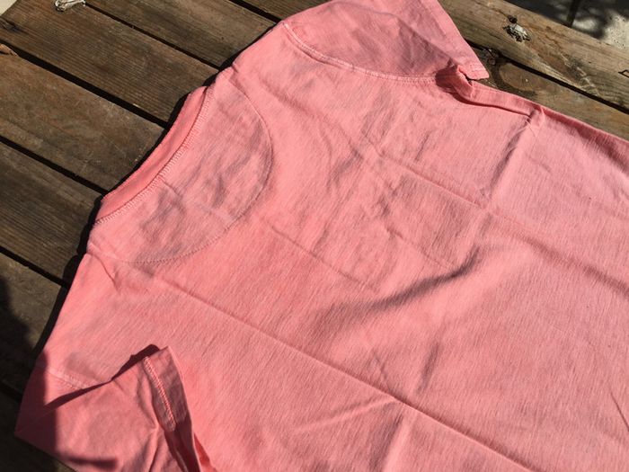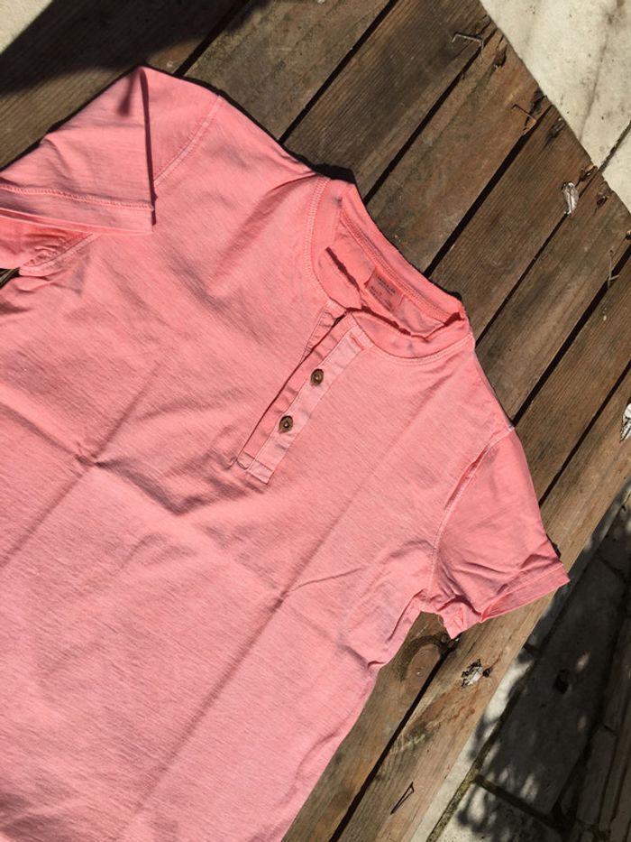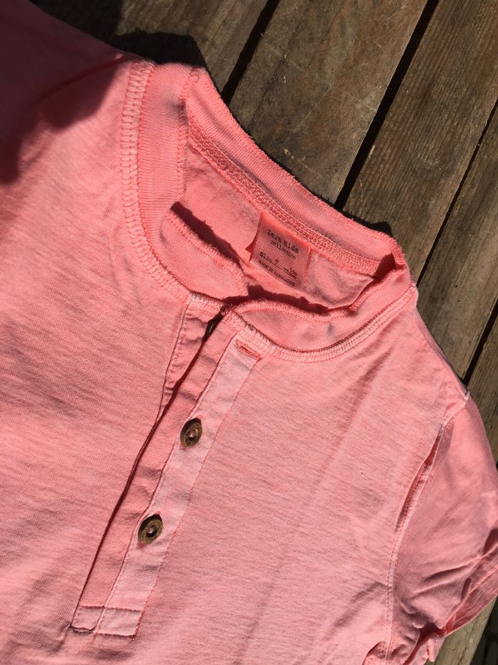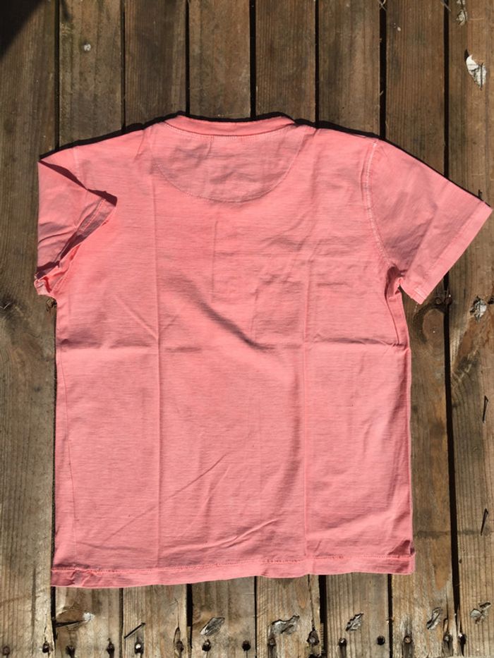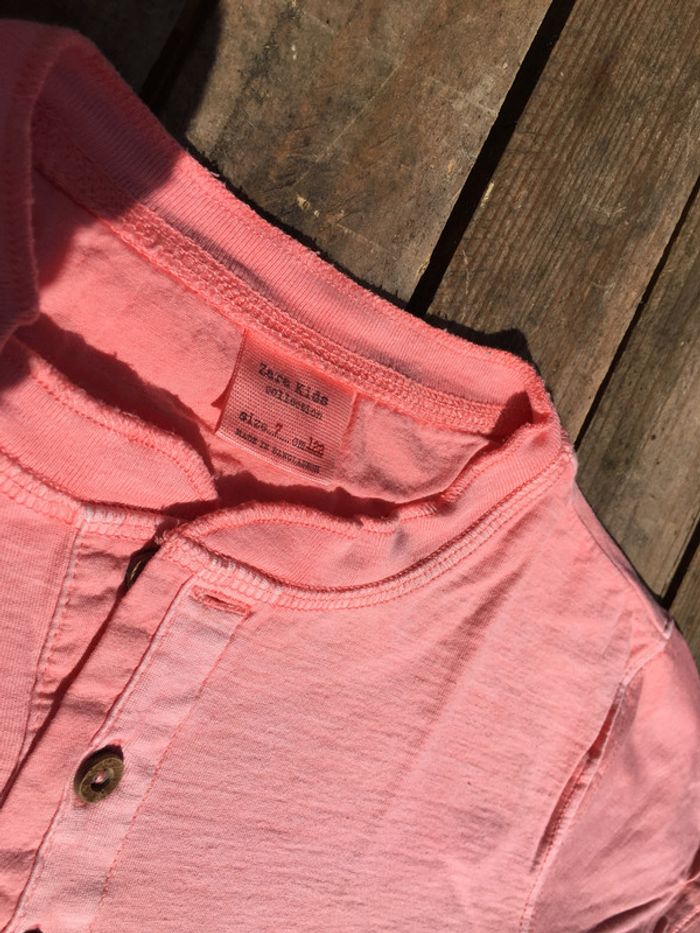 tee shirt - t-shirt enfant garçon Zara coloris orange blanchi délavé naturel tissu souple avec elasthane manches courtes encolure arrondie fente milieu devant avec boutons coupe droite bas droit porté une seule fois