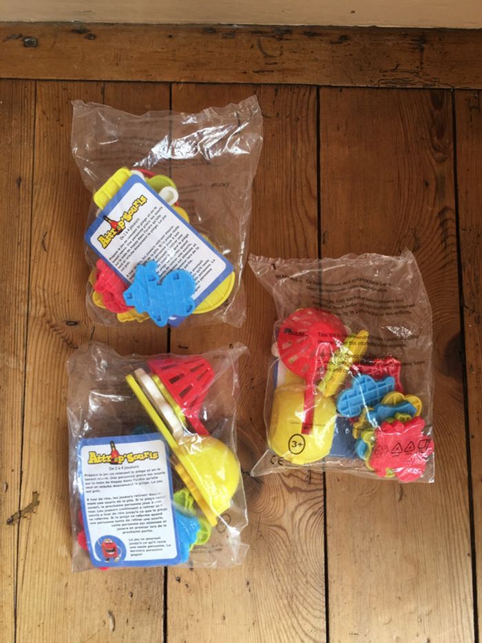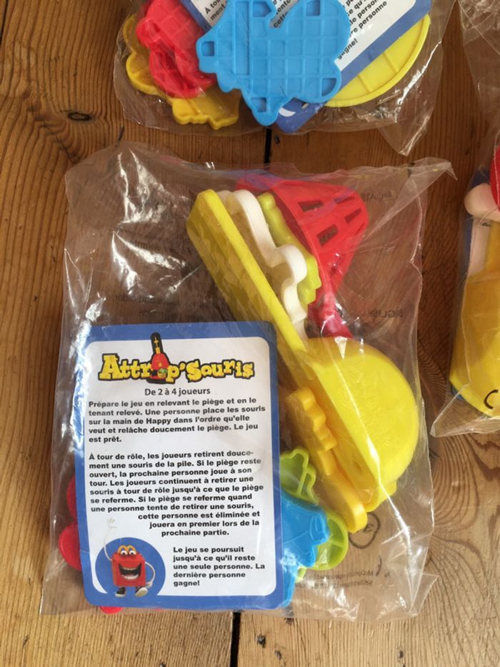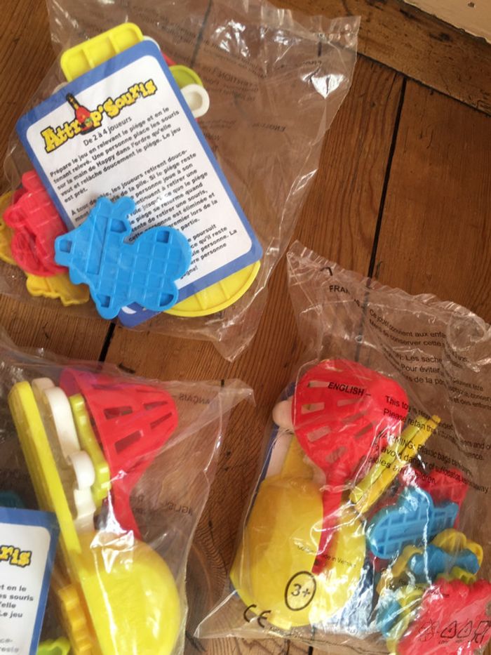 lot trois jouets jeux de société attrap’ souris collection Mc Donald’s Happy Meal en plastique à collectionner