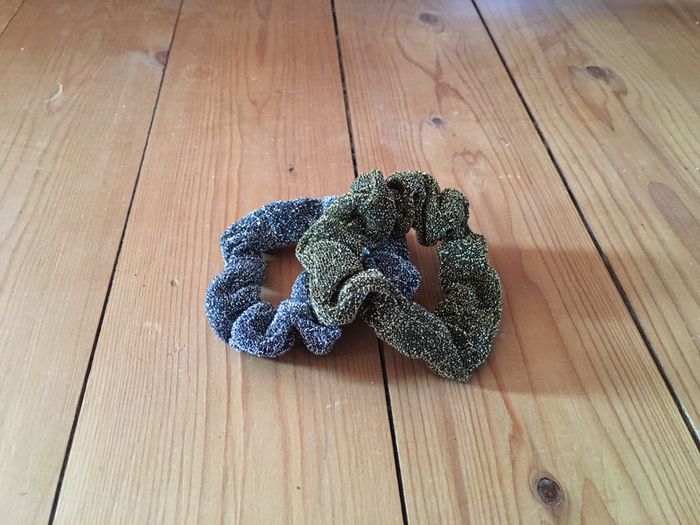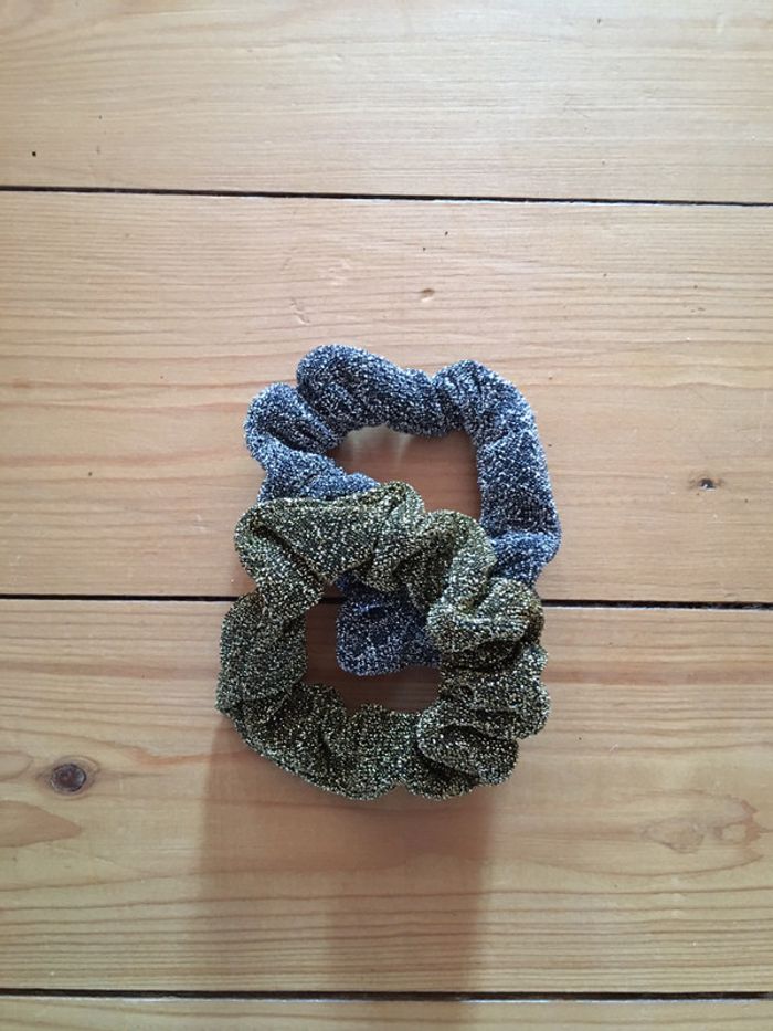 Lot 2 chouchous tissu gris argenté, doré, paillettes Adopt’ - photo numéro 1