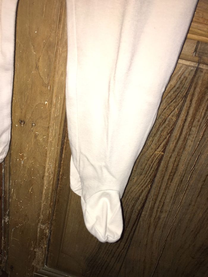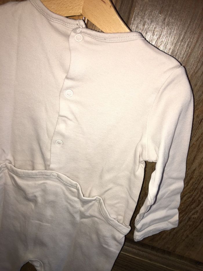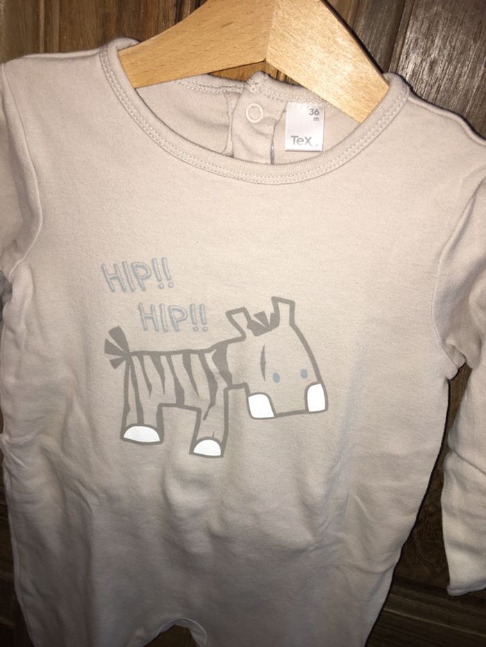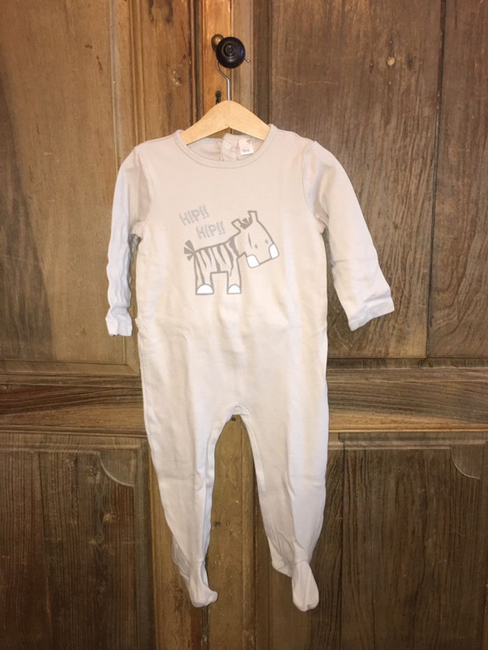 pyjama long 1 pièce grenouillère bébé enfant garçon Tex souple avec élasthane motif zèbre marron + beige + blanc manches longues boutons pressions au dos pieds recouverts encolure arrondie jambes longues porté une seule fois