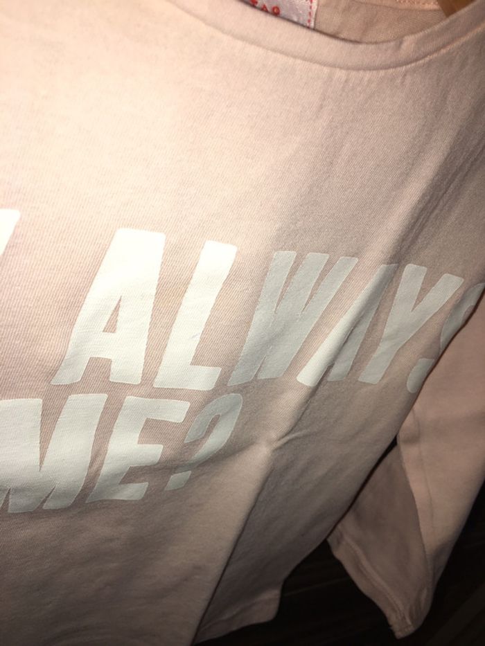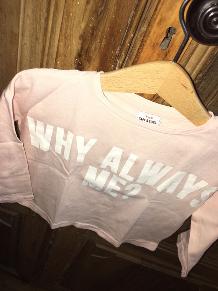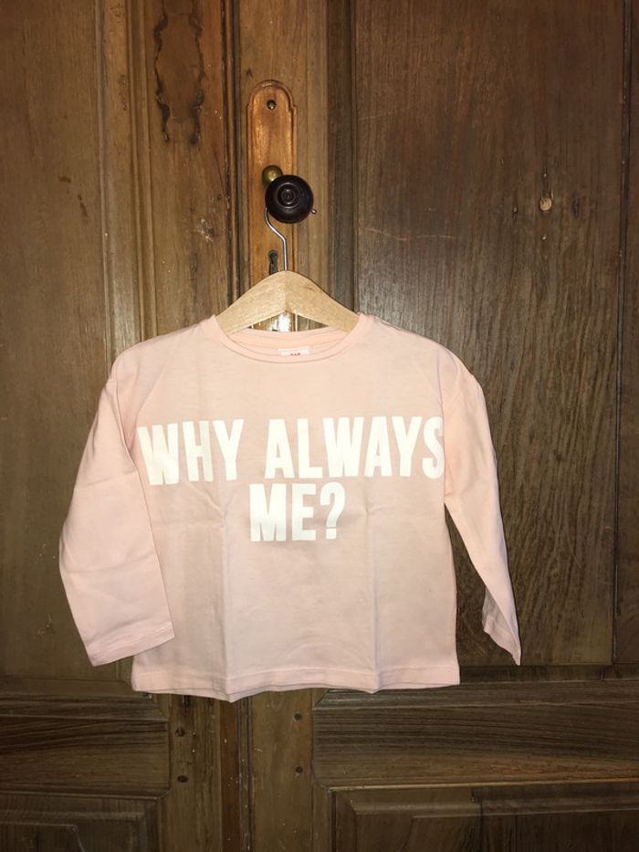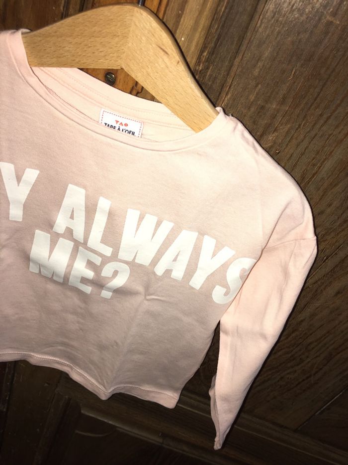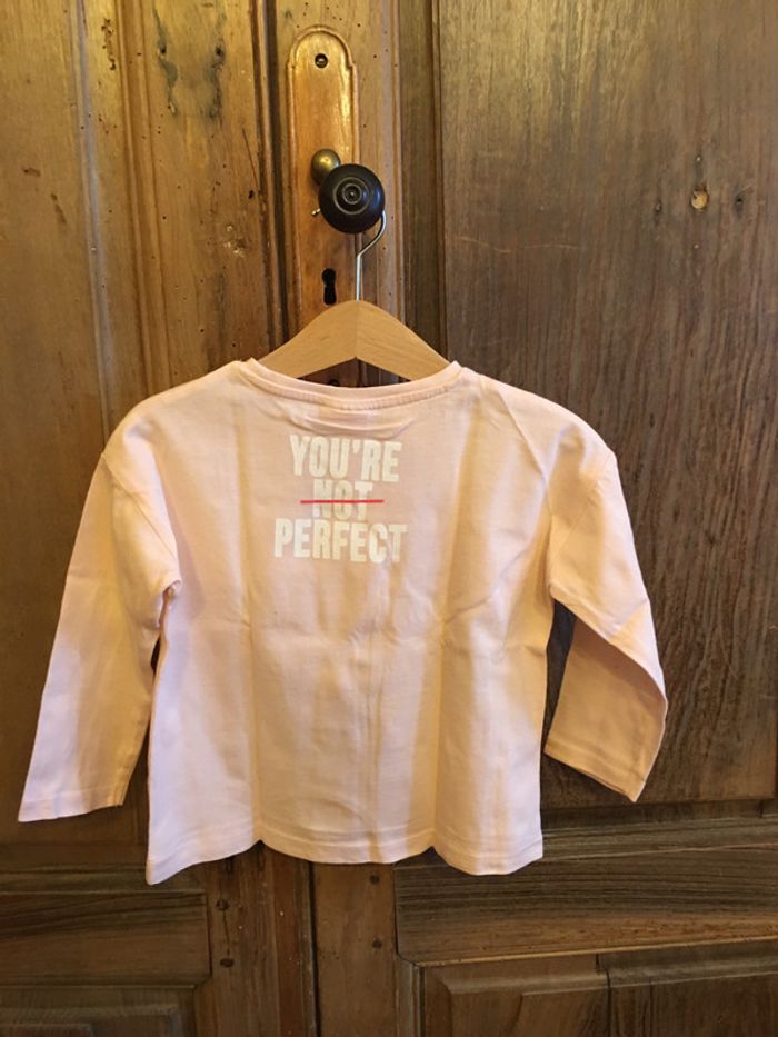 tee shirt / t-shirt enfant fille Tao tape à l’œil visuel devant print blanc (petite marque discrète cf photo) visuel dos print blanc et rouge tissu souple rose avec élastane manches longues coupe oversize bas droit encolure arrondie finitions ourlets