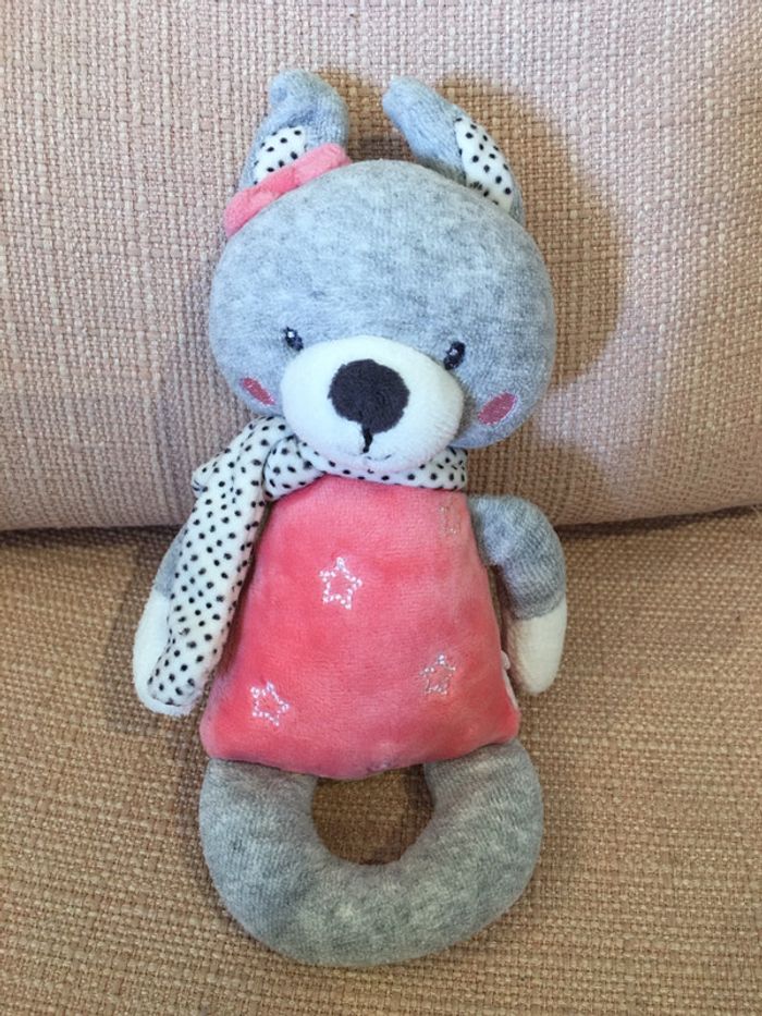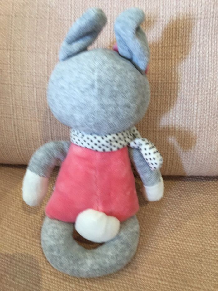 Hochet en tissu lapin rose gris blanc bébé fille Boutique Indépendante - photo numéro 1