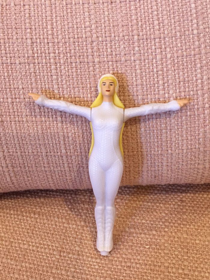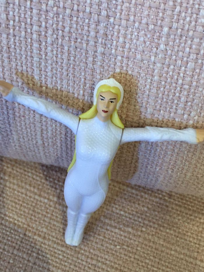 personnage figurine à collectionner DC Comics femme blanche jouet à collectionner Burger King coloris blanc jaune idéal pour rejouer les scènes du dessin animé film