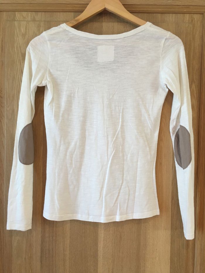tee-shirt manches longues femme Cache-cache blanc avec coudières marrons