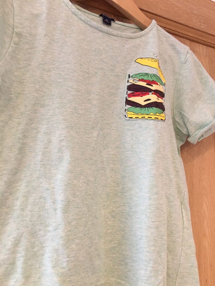 Tee shirt manches courtes enfant garçon vert chiné avec poche et visuel burger Kiabi - photo numéro 4