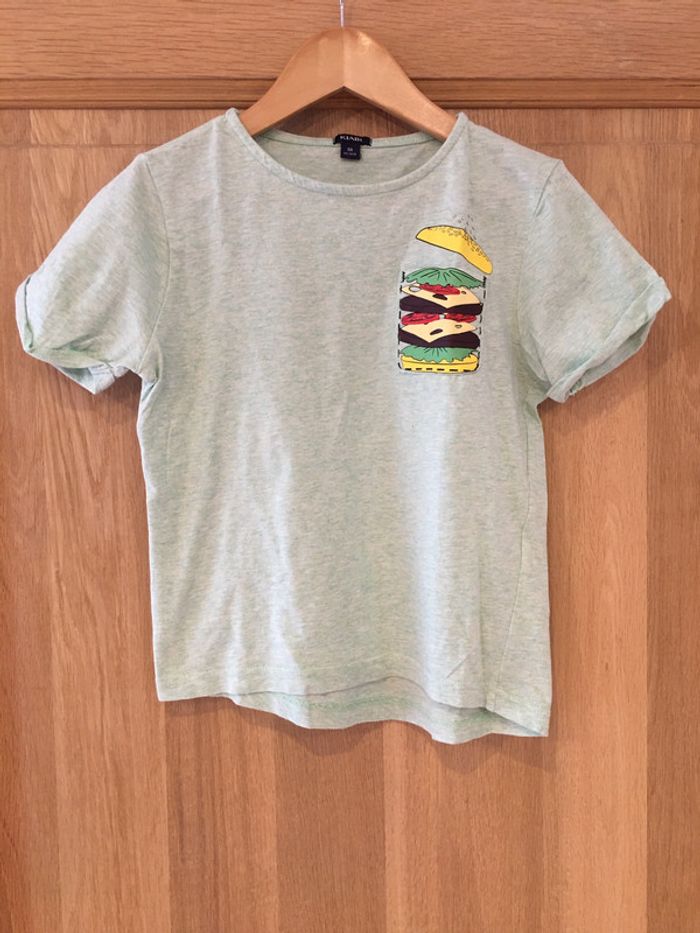 Tee shirt manches courtes enfant garçon vert chiné avec poche et visuel burger Kiabi
