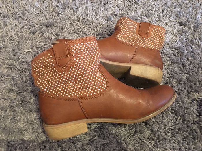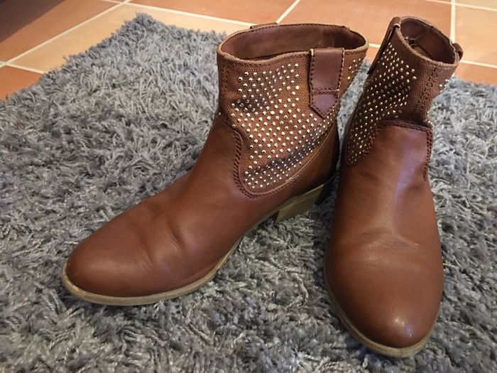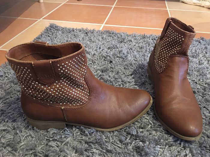 Chaussures bottines montantes marron avec clous argentés Stradivarius femme - photo numéro 1