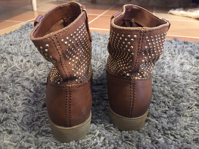 Chaussures bottines montantes marron avec clous argentés Stradivarius femme - photo numéro 3